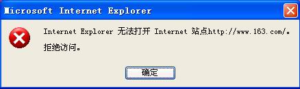 打开IE上网,不论打开什么网站都会重复跳出数个警告框:“Internet Explorer无法打开Internet 站点http://www.***.com/。拒绝访问”,(*号代表网站名,如:访问百度就显示http://www.baidu.com/,访问网易就显示http://www.163.com/)但所访问的网页都可以正常打开,只是在刚打开时不断地跳出该死的警告框,我用最新正版的瑞星,包括杀毒、防火墙、卡卡,都发现不了问题,哪位高手大哥告诉我怎么弄啊