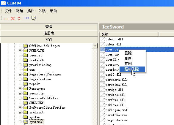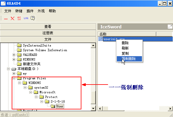用IceSword的手杀流程: