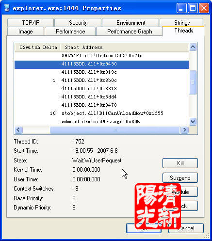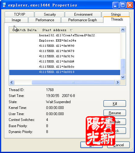 3.分别选中Threads中的各个dll 单击下面的suspend