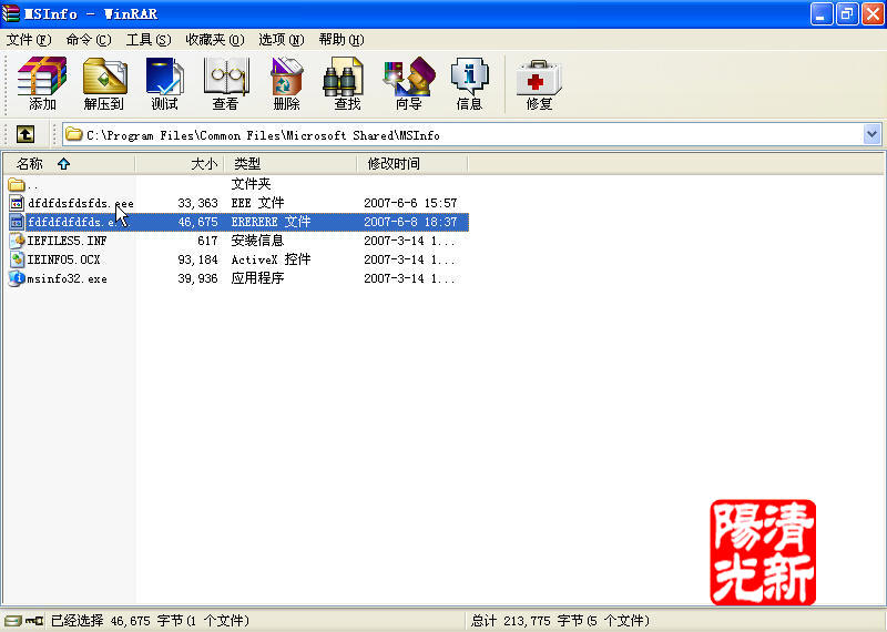 在C:\Program Files\Common Files\Microsoft Shared\MSInfo\下面释放一个同样由8个数字和字母组成的组合的文