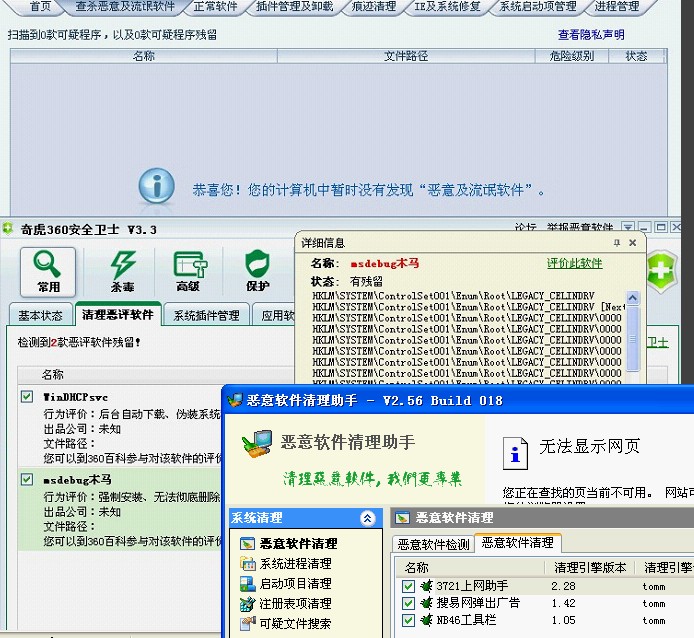 用清理工具又扫描出3个来。我晕。怎么办啊。