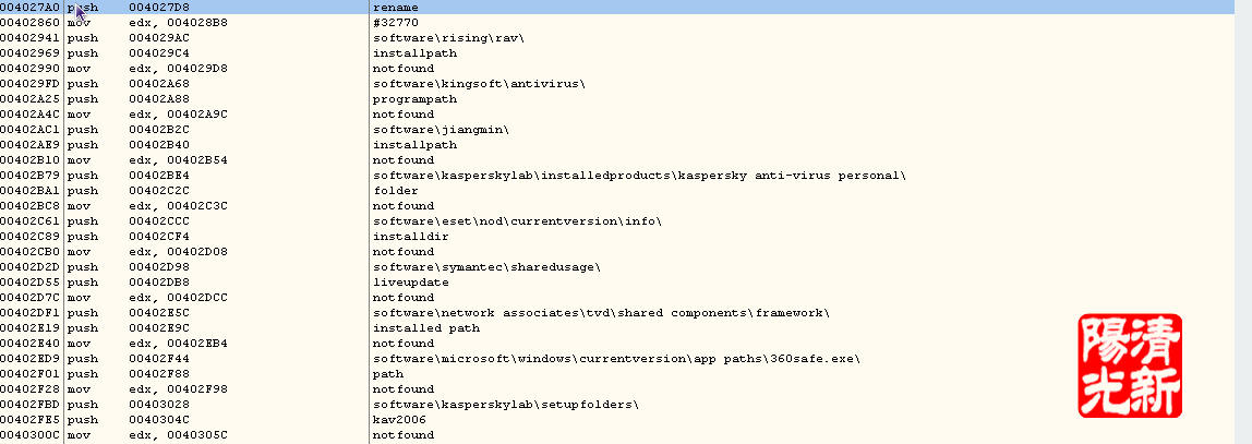 不过最新变种的病毒会查询以下注册表项的某些键值来获取相关安全软件的安装目录,在获得安装目录下生成以系统文件名"ws2_32.dll"命名的文件夹,从而使