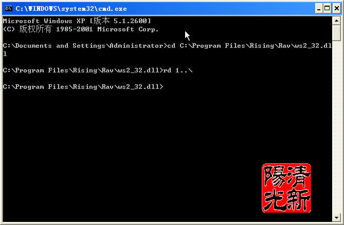 将要删除的ws2_32.dll文件或者文件夹,用鼠标左键拖放到1.bat的文件图标上(就像把文件拖到文件夹里的操作一样),一个CMD窗口闪烁之后伪"ws2_32.dll"文件夹就被删除了