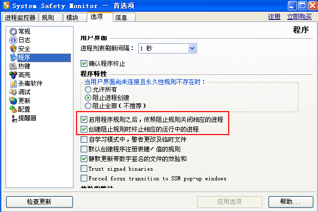 运行SSM,并将SSM设置为“自动运行”。SSM的“程序特性”按下图设置。