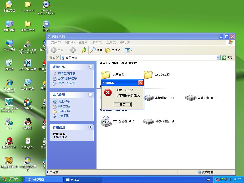 用瑞星杀毒光盘启动后杀完毒,自己把清理工作也做完了,但是就还只剩一个问题,双击打开我的电脑就会弹出如图的对话框