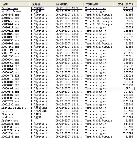 病毒名为:worm.Viking.om与worm.Win32.Pabug.a