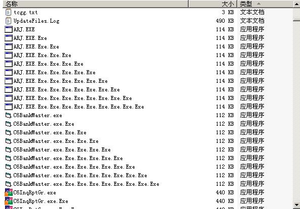 网络上一个共享盘,里面放着公司系统软件的自动更新文件.现在这些EXE文件的后面被加上了很多.EXE,致使因文件名与原来不同而自动升级失败.但瑞星查不出这个病毒.