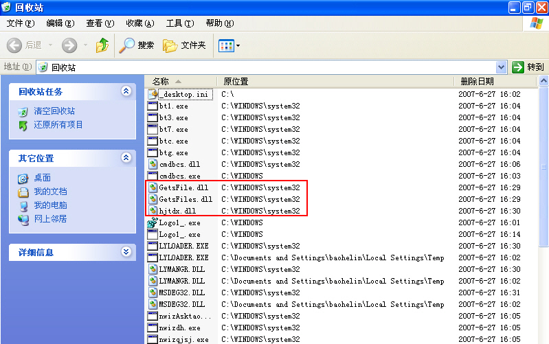 按上述思路,重启后,多数病毒文件都能顺利删除,但是图1、图2红框中的那几个病毒dll文件不能删除。