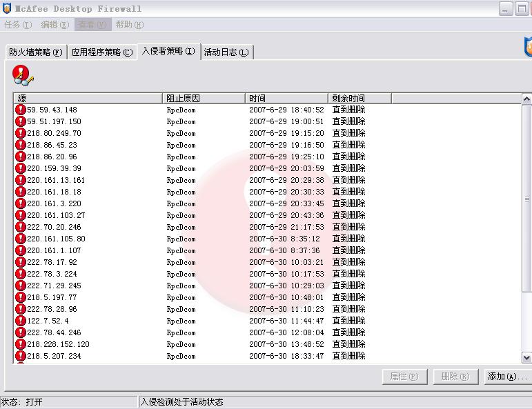 我最近安装了McAfee的防火墙,不装不知道,一装吓一跳,时常提示有黑客攻击,到现在已经提示好几次了,怎么办啊!我有很多重要资料,已经安装了微软提供的所有补丁,还安装了瑞星杀毒,卡卡助手,木马杀客,可是还一直受到攻击