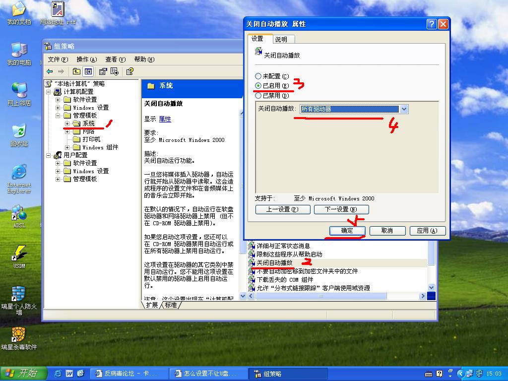 如果只针对你机,可以用组策略禁用:开始--运行--输入“GPEDIT.MSC”--回车--找到“关闭自动播放”项目条双击落--选择“所有驱动器”后再选择“已启用”--确定。