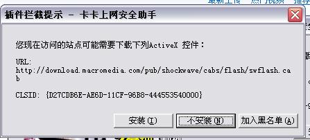 最近我的卡卡老是弹出(如图),搞得我想去视频网看视频都不得,我安装过了,可还是不行,请高手指点,让我的IE快好起来!!!谢谢