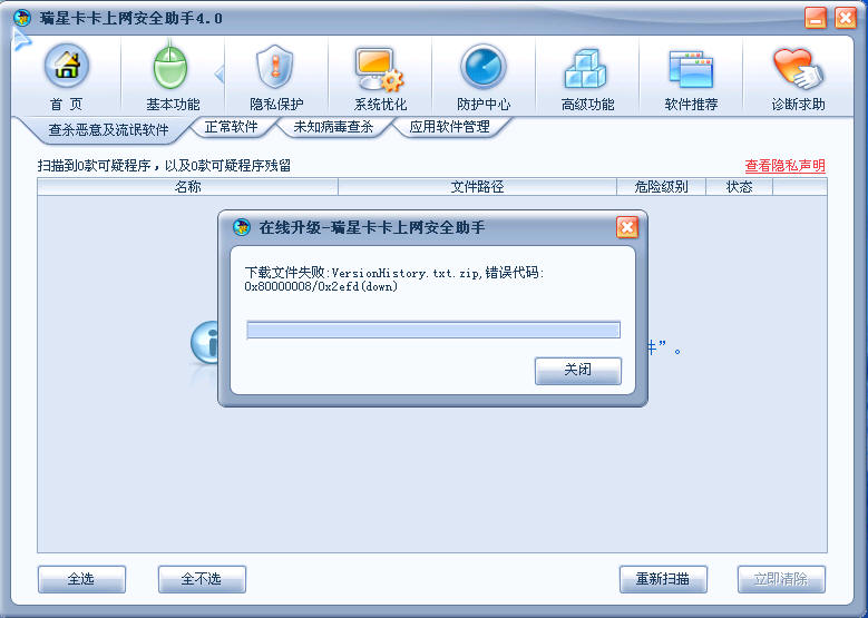软件问题请咨询瑞星技术支持部门。这里只是给大家看日志的。