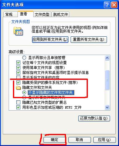 工具==文件夹选项==查看==隐藏受保护文件    就没了.