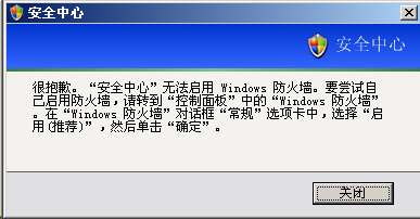 任务栏右下角出现安全中心红色图标,安全中心中防火墙被关,点“启用防火墙”防火墙在1秒不到的时间内又被关了,并出现如图的对话框。还有在这之前瑞星杀毒和360也被迫关闭过,不过又被我重新打开并杀出很多病毒,感觉应该和病毒有关,不过我已经用最新版的瑞星两次开机前扫描加两次windows下扫描,应该没病毒的说。