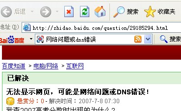 无法显示网页,可能是网络问题或DNS错误 出现这个要怎么处理啊~~只是有一部分的网页打不开啊~~~忧闷死了啊~~~帮我解决一下啊~~跪求哪个高手弄一下啊