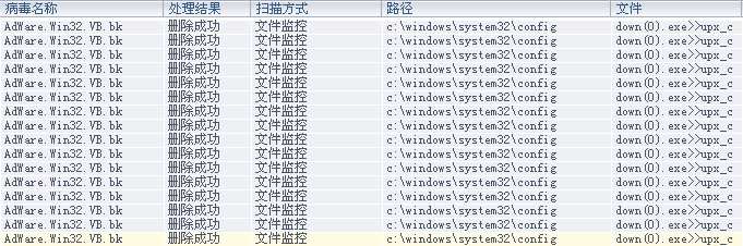 病毒文件监控历史记录路径:C:\WINDOWS\system32\config