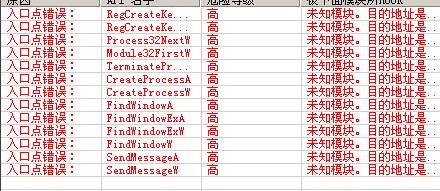 入口点错误:FindWindowA (危险等级: 高,  被下面模块所HOOK: 0x00E839A5)