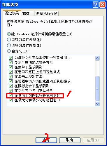 “我的电脑”图标右键--属性--高级--性能--设置,按下图操作: