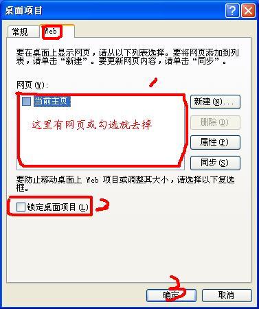 对桌面点右键——排列图标——取消“在桌面锁定web项目”