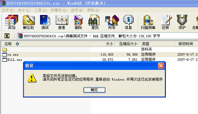 用瑞星没发现病毒,但是病毒没有运行成功,运行结果是什么?