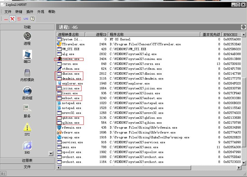 利用的工具是IceSword和SReng