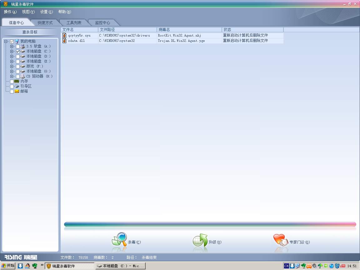 来强制删除.还有问题发个扫描报告上来,