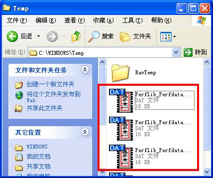 另外,c:\windows\temp\里面发现Perflib_Perfdata_f4.dat,无法彻底删除,直接删不掉,用冰刃强制删除后重启又有,不知道对电脑又没害处。
