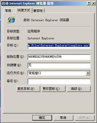 右键点击桌面或快速启动栏里的ie图标,点属性,看看“目标”这栏里面是不是 "C:\Program Files\Internet Explorer\iexplore.exe"  。如果后面还有东西(有的话应该是你提到的那个网址),删了,但要保留iexplore.exe后面的那个引号。参考附件图片