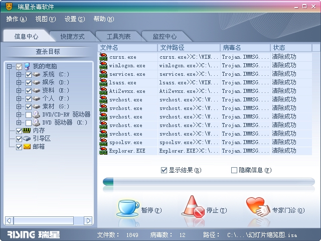 我的瑞星2007版,防火墙、病毒库都升级到最新,监控也打开,但还是中招。这个毒可以关闭监控,不过可以手动打开。要用什么专杀工具?