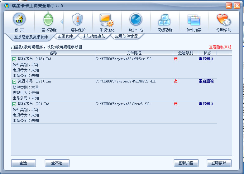 用卡卡助手删除后,重启以后仍是这几个病毒文件.