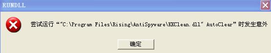 尝试运行c:\program Files\Rising\antiSpyware\KKClean.dll AutoClear 是发生意