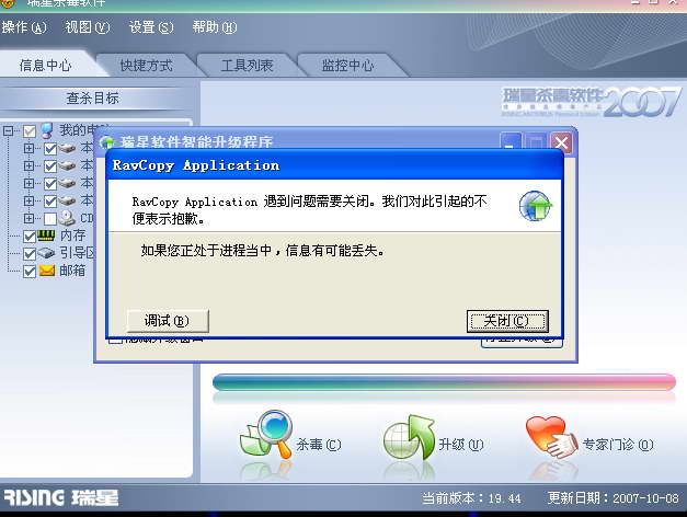 求助!瑞星升级出错
