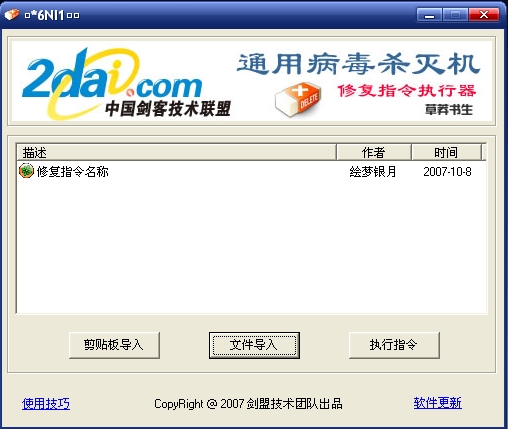 如果给你的回复带有修复指令,打开通用病毒杀灭机,导入指令,然后点击执行指令