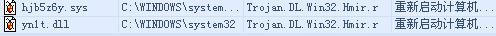 中了Trojan.DL.Win32.Hmir.r,用瑞星杀出两个这样的病毒.然后就是叫重新启动.可是再杀还是这两个病毒郁闷