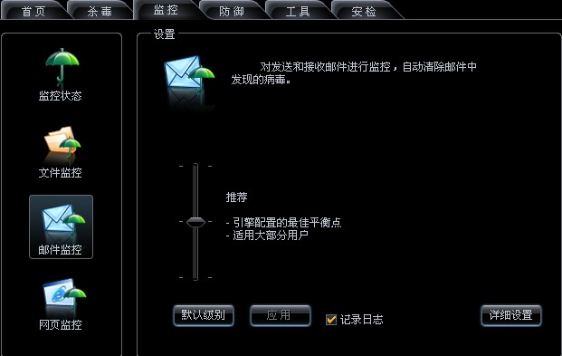 要禁用邮件监控老是没发现在哪儿控制,其他的用着也不爽,我好歹学过两年电脑,要是普通用户你让人家怎么操做?