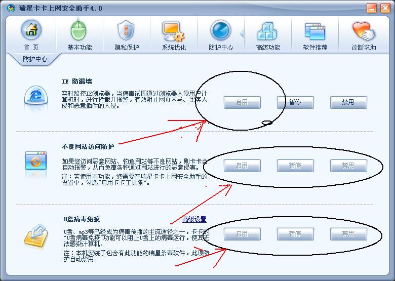 瑞星2008吸引了瑞星卡的部分功能.开启了瑞星监控.卡卡的分自动暂停.这是正常现象.