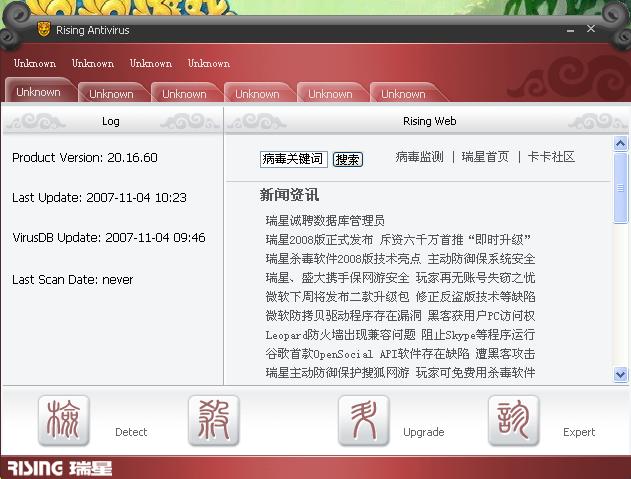 把瑞星的皮肤改为蓝色,再点选语言,选中文[你应该会些英语吧]就行了