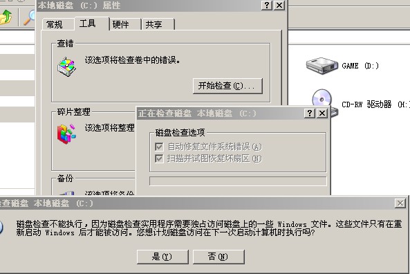 进入xp后,用磁盘扫描依然不可以用!