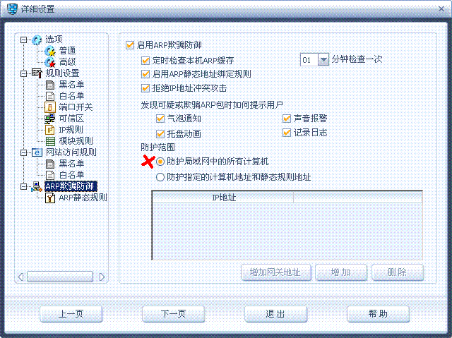在此特做紧急通知,凡是使用“瑞星2008防火墙软件”网络用户请马上关闭“ARP欺骗防御”中的“防御局域网
