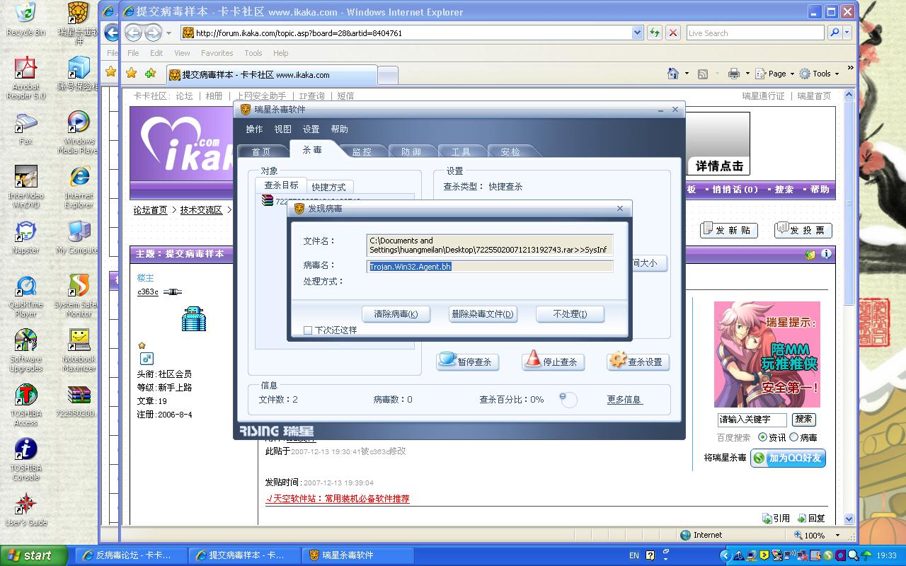 瑞星查不到它,其它杀毒软件可以,附件就是,NOD32提示为 木马病毒