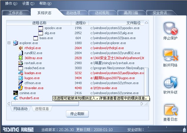 【求助】瑞星放火墙进程信息中显示。。。如下 谢谢各位帮忙