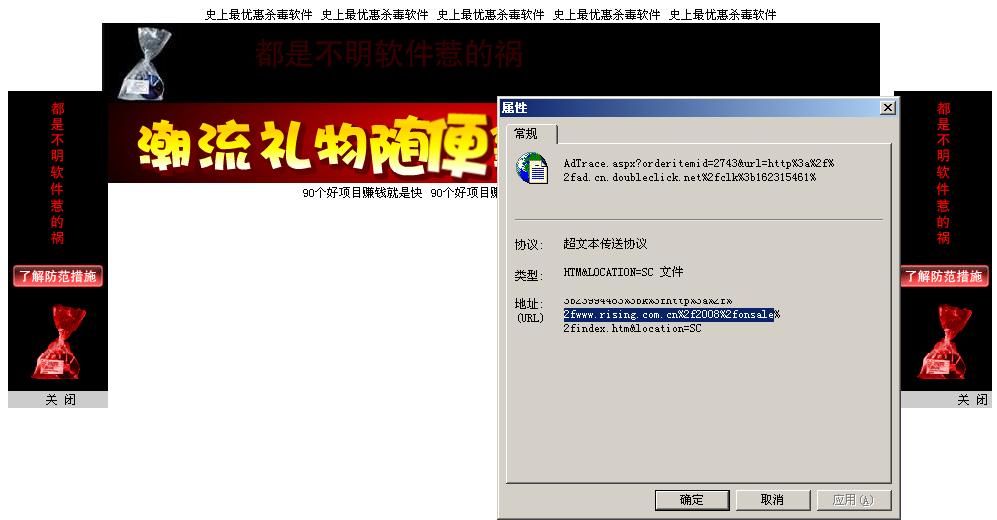 里面的链接 竟然有http://rad.vnet.cn/AdTrace.aspx?orderitemid=2742&url=http%3a%2f%2fad.cn.doubleclick.net%2fclk%3b162315461%3b23994480%3bh%3fhttp%3a%2f%2fwww.rising.com.cn%2f2008%2fonsale%2findex.htm&location=SC