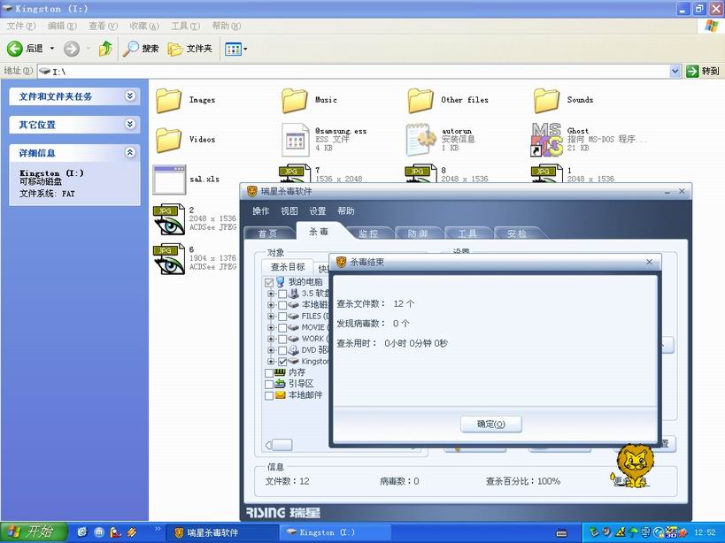 古老的U盘病毒,一共三个隐藏文件,sal.xls.exe,autorun.inf,ghost,利用autorun的自动运行功能运行病毒,以前还是瑞星2007版的时候,该病毒每次都栽在瑞星的实时监控只下,现在升级到2008版后,发现它死活都查不到该病毒了,连我在U盘隐藏文件中都看到这三个病毒文件了,瑞星楞是说没有找到病毒,真TMD的神奇!难道瑞星升级到2008以后开始和该病毒和平共处了?
