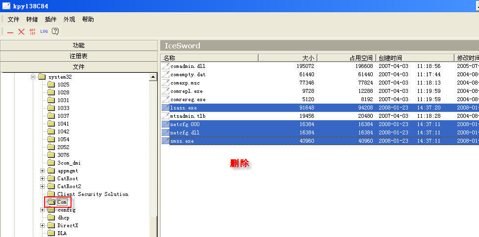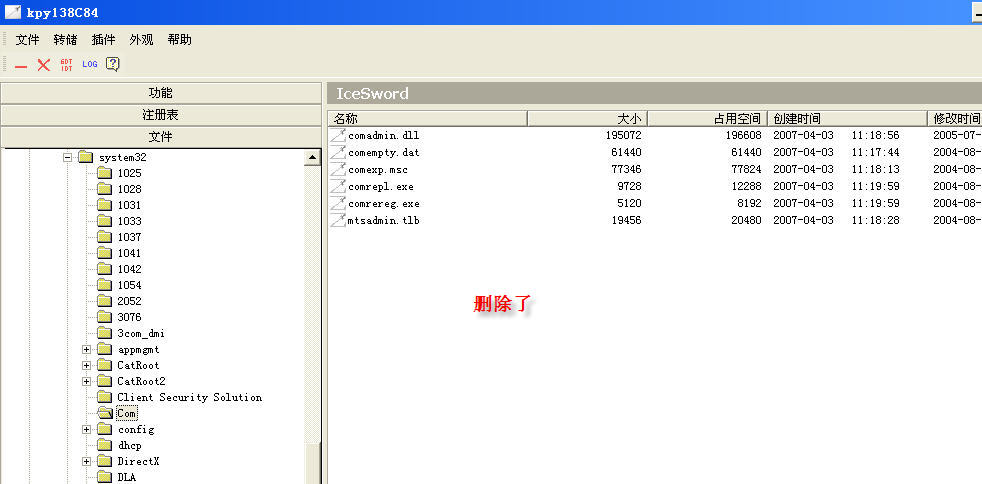 图1:只释放了这么多病毒文件。由于采取了措施阻止病毒驱动加载,病毒进入系统后,IceSword仍然可以使用。
