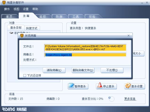 再重启电脑,升级杀毒软件至最新版本全盘杀毒。