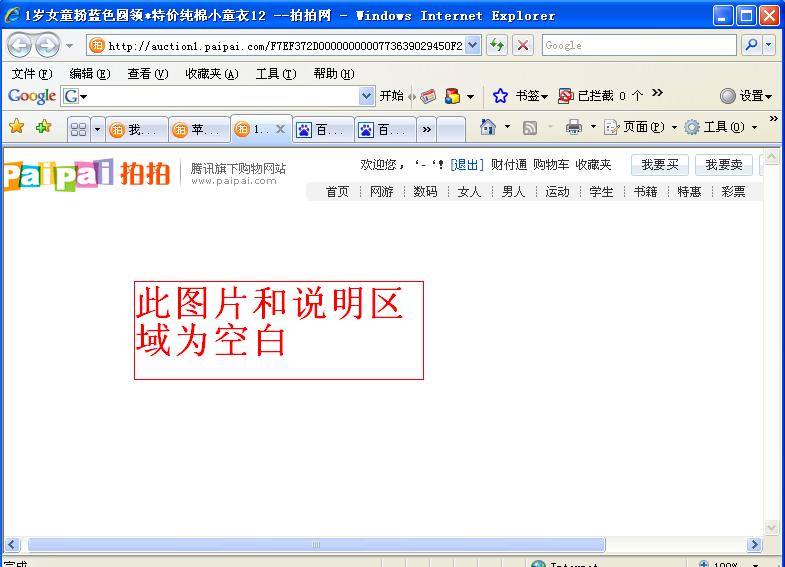 再进入拍拍网,能看见列表的小图片,具体打开某商品的图片时,图片和介绍都显示为空白...