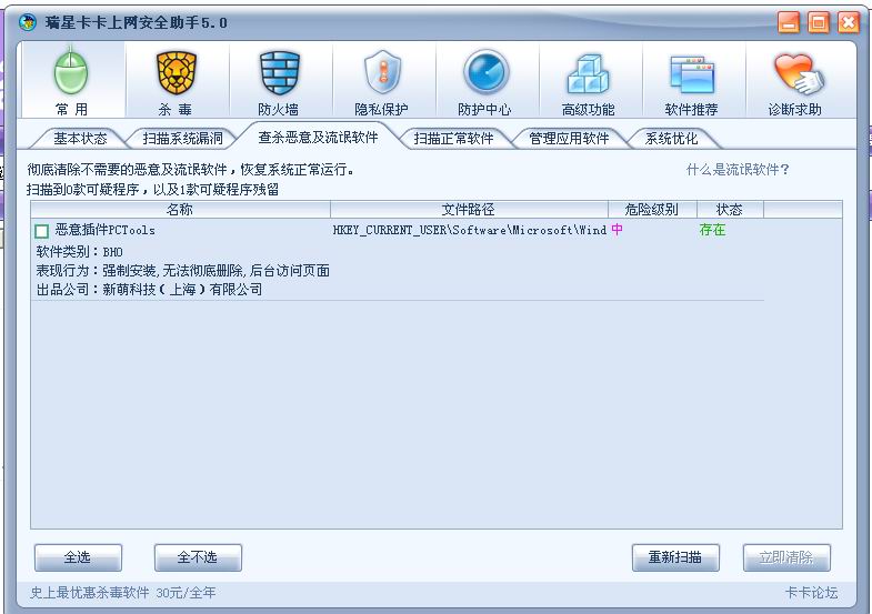 近期惹上了新萌科技上海有限公司的"恶意插件PCTools",用卡卡删过后又会重来。请教大伙该怎么办才好?详见附件