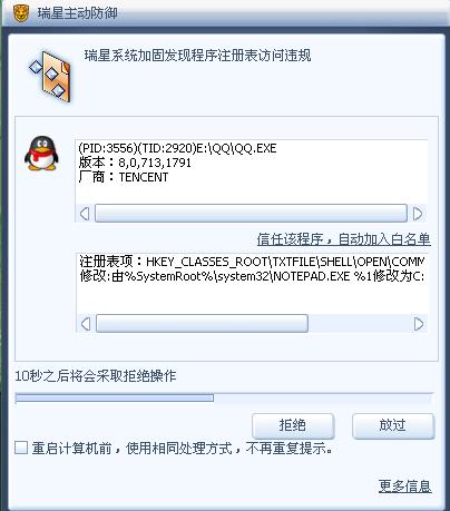 运行QQ,瑞星出现这个提示。是中病毒了吗?