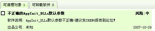 Windows清理助手扫描后发现AppInit_DLLS存在风险,如图: