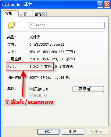 5、完成windows文件保护扫描后,再检查以下dllcache文件夹(受保护的系统文件缓存处),发现文件数目达3340个。这还算靠谱(图7)。